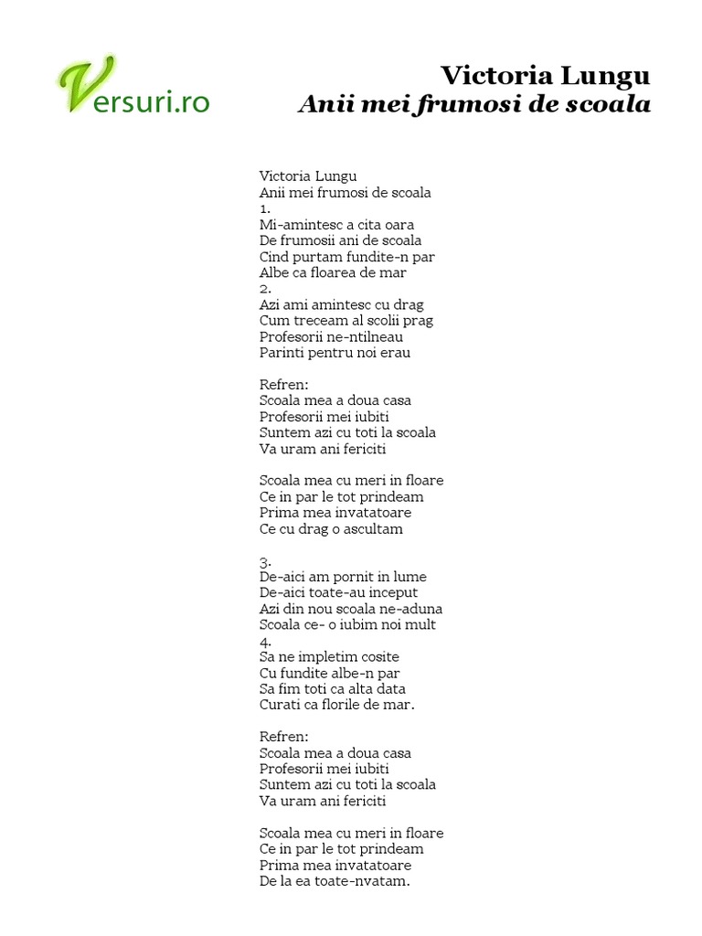 Victoria Lungu Anii Mei Frumosi De Scoala