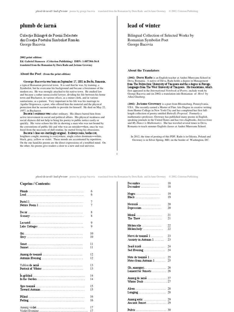 Bacovialeadofwinter2012 Pdf Nature Fiction Literature
