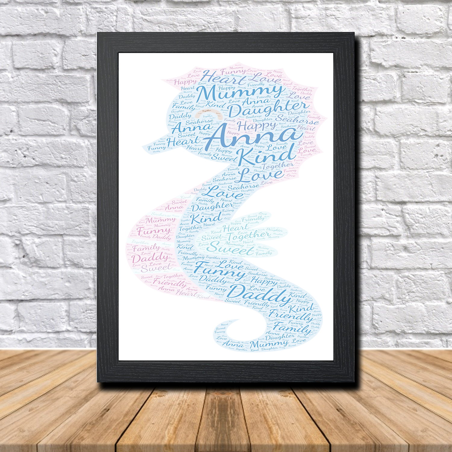Seahorse 1 Personalised Childrens Christening Word Art Gift