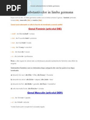 Genul Substantivului Si Reguli De Determinare In Limba Germana Docx