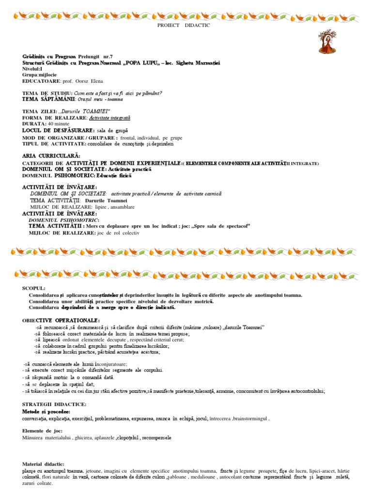 Proiect Mirosul Florilor De Toamna Pedagogie 332409